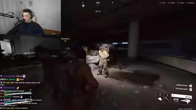 01:35:42Die Streamer diskutieren über das Spielprinzip von Arc Raiders und über die Moral hinter dem PvP-Kampf. Paul ist schockiert, nachdem er im Spiel von einem anderen Spieler hinterrücks erschossen wurde, obwohl dieser sich als freundlich gab. Die beiden beschließen, sich im Spiel als Freunde hinzuzufügen, können es aber zunächst nur über Steam lösen. Dabei fällt Paul auf, dass er ein schlechtes Zielen hat und meint, eine 'Flasche' zu sein, was der Humor des Streams prägt.