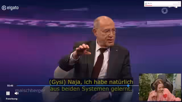 00:49:22Es wird über verschiedene TV-Formate diskutiert, darunter eine Doku mit Eva Schulz, Maischberger mit Baerbock und Gysi sowie eine Einordnung von Monitor zum Thema Schwarz-Grün. Der Fokus liegt zunächst auf Maischberger mit Baerbock und Gysi. Es wird erwähnt, dass Trump Realitäten geschaffen habe und mit Putin einen Diktatfrieden für die Ukraine verhandeln werde, wobei Europa sich zukünftig um die Angelegenheiten des Kontinents kümmern solle. Die bevorstehende ärztliche Untersuchung der Blutwerte und Lungenfunktion wird erwähnt, aber es wird zugesichert, dass eine halbe Stunde überzogen werden könne. Die Sendung 'Maischberger' wird mit dem Titel 'Baerbock und Gysi' angekündigt, wobei auf mögliche Framing-Effekte hingewiesen wird. Die Sendung entpuppt sich als 'Gysi versus Aiwanger', was zu einer leichten Enttäuschung führt, da ursprünglich Gysi im Fokus stehen sollte. Es wird die Frage aufgeworfen, ob es einen klaren Sieger im Duell zwischen Scholz und Merz gab, wobei die Meinungen auseinandergehen. Es wird kritisiert, dass die Diskussionen zu detailverliebt seien und der Unterhaltungswert fehle. Die Teilnehmenden wünschen sich mehr Unterhaltungswert, Rührungswert und Quälwert in der Politik. Es wird angemerkt, dass die Politiker so tun, als könnte es so weitergehen wie bisher, was viele Menschen stört, da sie einen Wendepunkt sehen.