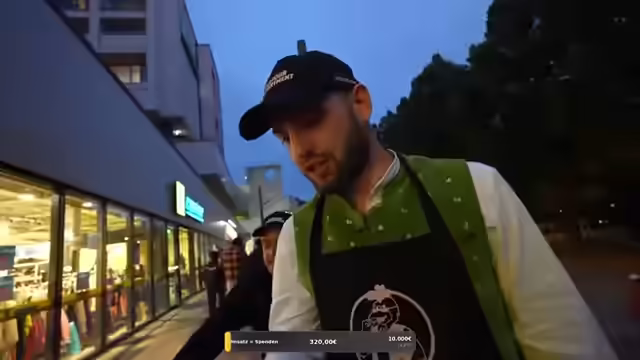 06:47:45Es wird über die Schärfe der Burger diskutiert, wobei einige Teilnehmer die Würze loben. Es wird festgestellt, dass alles, was an diesem Tag gekauft wird, zu 100% gespendet wird, aufgeteilt zwischen der Münsteraner und Hamburger Tafel. Team Kaulis ist ebenfalls anwesend. Es wird betont, dass alle Ausgaben der Zuschauer an diesem Tag vollständig an wohltätige Zwecke gespendet werden sollen, was die Zuschauer dazu anregt, großzügig zu sein. Der Regen setzt ein, während immer mehr Leute eintreffen. Es wird kurz erwähnt, dass ein Koch zum ersten Mal Burger zubereitet und dabei gelegentlich Fehler macht und Pausen einlegt. Es wird über kalte Burger und falsche Bestellungen gesprochen, wobei der Fokus darauf liegt, den Kunden trotz der Fehler ein positives Erlebnis zu bieten. Ein YouTuber wird erkannt und erhält einen Burger aufs Haus.