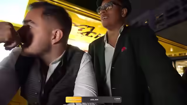 00:18:35Das Team trifft auf ein Fernsehteam des BR und tauscht sich kurz aus. Es wird festgestellt, dass die Musik im Stream lizenzfrei ist. Anschließend wird überlegt, welche Fahrgeschäfte besucht werden sollen, wobei Juli aufgrund seines Zustands etwas zurückhaltend ist. Florian Schmidt-Sommerfeld, ein Kommentator von Sky, schickt Grüße und identifiziert den blonden Moderator des ARD-Teams als Alexander Arnö. Es wird kurz überlegt, ein Fahrgeschäft zu besuchen, bei dem sich Juli übergeben müsste. Es wird über die Lautstärke auf dem Oktoberfest gesprochen und die Schwierigkeit, sich selbst zu hören. Der Starlink für die Internetverbindung wird weiterhin mitgeführt. Das Team beschließt, weiterzugehen, da die Schlange an einem Fahrgeschäft zu lang ist. Es wird kurz überlegt, schießen zu gehen, und Florian Schmidt-Sommerfeld schickt eine Nachricht.