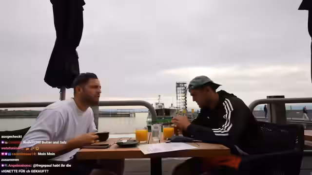00:18:28Während des Frühstücks in einem Café direkt am Ufer des Bodensees, wird die Atmosphäre als sehr entspannt und gemütlich beschrieben. Die Streamer interagieren intensiv mit den anwesenden Gästen, vor allem mit einer Schulklassen-Gruppe auf einem Schulausflug. Es kommt zu witzigen Anekdoten, wie der Vorwurf, Niki würde unbewusst alle ansehen. Der Chat spielt eine wichtige Rolle für die Moderation und die Unterhaltung. Es werden Fragen beantwortet, wie Plattformpräferenzen (Instagram, TikTok, YouTube) und berufliche Pläne der Jugendlichen. Auch bekannte Chatter wie Phil werden im Chat gegrüßt, was die Reichweite des Streams unterstreicht.