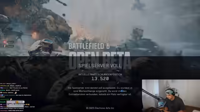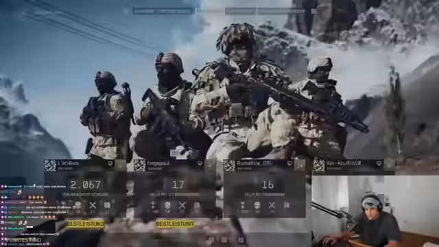 00:40:45Nach den Ankündigungen wechselt der Streamer zum Gaming-Teil des Streams. Er startet in die Battlefield 6 Demo, für die er sich einen selteneren Zugangskode besorgt hat. Da er früher PlayStation gespielt hat, nutzt er einen Controller, muss sich aber erst an die Steuerung und das Zielen mit der Maus gewöhnen. In seinen ersten Runden kämpft er sich zurecht, sammelt erste Erfahrung mit den Maps und Mechaniken und stellt fest, dass das Spielprinzip spannend ist, auch wenn seine eigenen Fähigkeiten und die Waffenstärke im Moment nicht ideal sind.