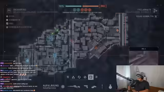 02:34:23Zu Beginn des Streams konzentriert sich der Streamer intensiv auf ein Battlefield-Spiel, in dem er sich gegen eine Überzahl von Sniper-Spielern zur Wehr setzen muss. Er entscheidet sich, selbst auf Sniper umzusteigen und versucht gezielt, Kopfschüsse zu landen. Das Spiel verläuft für ihn zunächst nicht optimal, da er in der ersten Runde eliminiert wird und ihm das auf der Map fehlende Positioning Probleme bereitet. Dennoch findet er Gefallen am Spiel und äußert sich besonders positiv auf die Ankündigung eines bevorstehenden Battle-Royale-Modus, den er als extrem spannend und spaßig empfindet.