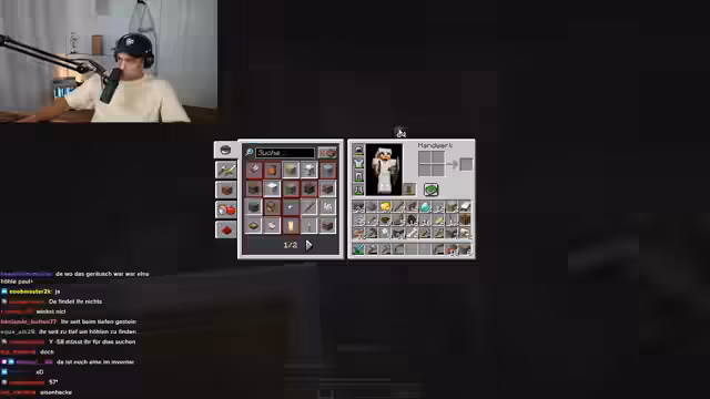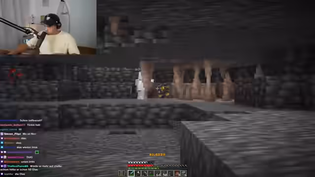 08:01:17Die Suche nach dem Endportal gestaltet sich als zähes und frustrierendes Unterfangen. Die Spieler irren lange in dem unterirdischen Labyrinth aus Gängen und Höhlen umher, verlieren dabei wichtige Werkzeuge wie Spitzhacken und geraten in Streit über die richtige Vorgehensweise. Trotz der Unterstützung des Chats, der Tipps gibt, schaffen es die Spieler nicht, den Eingang zum Endportal schnell zu finden, was die Nervosität und Müdigkeit im Stream deutlich ansteigen lässt.
