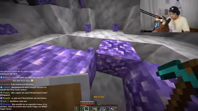 04:48:49Nach anfänglichem Frust macht die Gruppe einen entscheidenden Durchbruch: Niki findet tatsächlich große Mengen an Diamanten und teilt die Funde mit dem Chat. Eine Riesenhöhle wird entdeckt, was die Stimmung hebt. Das Spielzeug wird unterbrochen durch einen geistigen "Raids" durch Kuba, dem Mitbewohner, der seine Musik einblendet und für Ablenkung sorgt. Der Streamer reagiert gelassen und findet die Aktion lustig.