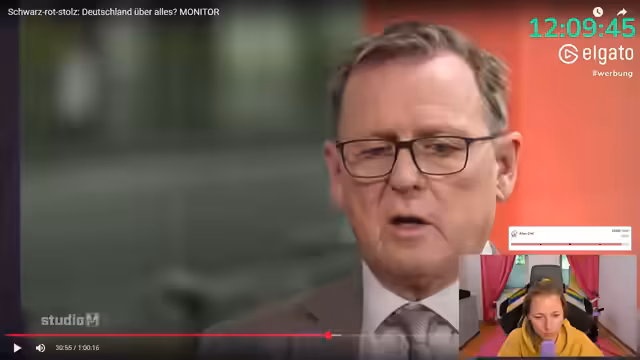 01:29:01Der Streamer beginnt mit der Betrachtung der Monitor-Sendung, in der Bodo Ramelow von der Linken und Tijan Attaolo von der CDU diskutieren. Ramelow hatte kurz zuvor Vorschläge zur Veränderung der deutschen Nationalhymne und Flagge gemacht, was zu heftiger Kritik führte. Im Gespräch bei Monitor erörtern beide Politiker die Bedeutung nationaler Symbole und die Notwendigkeit, diese gegen Extremisten von beiden Seiten zu verteidigen.
