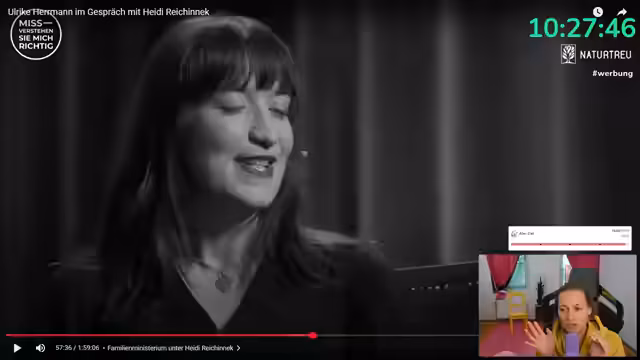 01:11:27Die Streamerin kündigt an, in der zweiten Streamhälfte Politik machen zu wollen. Zuerst zeigt sie jedoch ein kurzes Update-Video von Taddeus und Marlene, das diese über den Prozess nach ihrem Interview veröffentlichen haben. Die Streamerin zeigt sich beeindruckt von der Offenheit des Paares und bittet die Community, Fragen in die Kommentare zu posten, falls sie den weiteren Prozess begleiten wollen. Dies führt zu einem kurzen, aber positiven Austausch über den Mut der beiden.