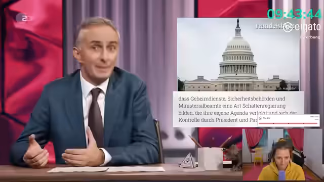 08:27:08Der Stream beginnt mit einer Diskussion über politische Entwicklungen in den USA. Es wird über die ZDF-Sendung Magazin Royale gesprochen, die sich mit der aktuellen Lage in den USA beschäftigt. Dabei wird besonders auf die Veränderung der Machtverhältnisse zwischen Deutschland und den USA eingegangen. Seit dieser Woche schauen US-amerikanische Late-Night-Moderatoren zu deutschen Late-Night-Stars auf, was eine historische Wende in den deutsch-amerikanischen Beziehungen darstellt.