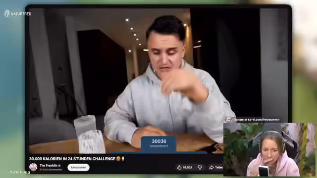 00:13:20Tiefgehende Analyse ungesunder Essinhalte: Vorgestellt wird 'The Franklin' mit seiner 30.000-Kalorien-Challenge (z.B. 240 Chicken Nuggets). Erklärung des Unterschieds zwischen Kalorien und Kilokalorien. Kritik an der Popularität solcher Videos und deren gesundheitlichen Risiken. Persönliche Erfahrungen werden geteilt: Keine Gewichtskontrolle seit ADHS-Medikamenten, Privileg nicht auf Kalorien achten zu müssen. Erwähnung von Marken wie Hitchies (vegane Snacks) und deren Marketingstrategien.