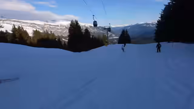 03:05:42Es ist 16:15 Uhr und die letzte Talabfahrt steht an. Die Stimmung ist entspannt und das Wetter ist weiterhin gut, wenn auch kalt. Die Gruppe fährt die Pro-Line und genossen den Ausblick. Paul ist beeindruckt von der Hip-Hop-Musik und dem Vibe im Skigebiet. Sie genießen die letzten gemeinsamen Minuten auf der Piste und schauen den anderen Skifahrern zu.