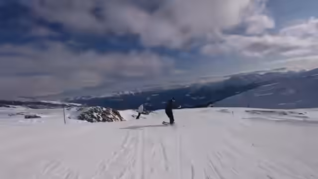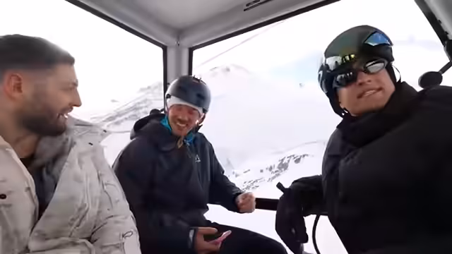 00:23:59Die Gruppe beginnt mit ihrer ersten Abfahrt und stellt fest, dass es keine spezielle Bank für Snowboarder gibt. Nici vergleicht sein Gefühl beim Anfahren eines steilen Stücks mit dem eines Skispringers. Sie probieren aus, wie sich das Fahren mit nur einem Ski anbindet anfühlt. Während der Fahrt bemerken sie, dass Sandro fehlt und diskutieren, ob sie eine Gondel mit nur vier Personen nehmen sollen. Das Wetter ist hervorragend und sie genießen die Aussicht.