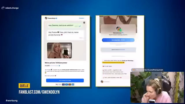 03:03:20Es wird detailliert kritisiert, wie Influencerinnen über Dienste wie FanBlast vorgefertigte Sprachnachrichten und Chats nutzen, um Fans zu täuschen. Die Technik soll vorproduzierte Audios so verschleiern, als wären sie live aufgenommen. Dieses System wird als "brillant" bezeichnet, da es die Täuschung perfektioniert. Ziel ist es, Gelder unter Vorspiegelung falscher Tatsachen zu erschleichen, was rechtlich als Betrug nach §263 StGB gewertet werden könnte.