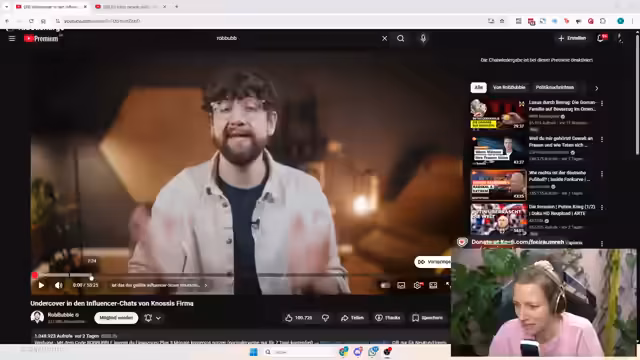02:03:59Der Streamer kündigt eine Reaction auf Robbubbles Investigativvideo über Knossis Firma Digital Blast GmbH an. Es geht um mutmaßlichen Betrug durch bezahlte Chat-Nachrichten, bei denen Fans angeblich direkt mit Influencern chatten – tatsächlich jedoch mit Agenturmitarbeitern. Robbubble präsentiert Recherchen über Druckausübung auf Fans und millionenwerte Transaktionen. Der Streamer plant eine detaillierte Analyse nach einer 48-Stunden-Schonfrist.