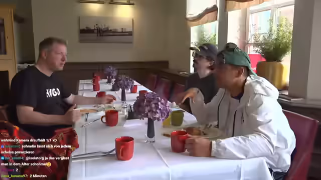 07:56:10Zu Beginn des achten Tages stehen die Streamer vor der letzten Etappe der Tour. Sie haben nur noch etwa dreieinhalb Stunden zu streamen, bevor das Vorhaben nach einer Woche Live-Streaming endet. Es herrscht eine Mischung aus sentimentaler Nostalgie und Vorfreude auf das Finale in Hamburg. Die Teilnehmer sprechen über den gestrigen Abend, bei dem bis halb vier Uhr wachgeblieben wurde und bei dem es angeblich zu verschiedenen Vorfällen kam, wie einem vermeintlichen Wichsen oder dem Kratzen im Schlaf. Die Aufbruchstimmung ist spürbar, und die Vorbereitungen für die letzte Fahrt werden besprochen, inklusive der Frage nach dem Frühstück.