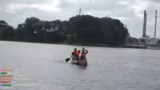 08:53:55Die Einfahrt in den Hamburger Hafen gestaltet sich schwierig und ereignisreich. Ein großer Tanker legt direkt vor der Gruppe ab und blockiert die Route, was zu erheblichen Verzögerungen führt. Die Gruppe muss lange auf das Schiff warten und verliert dadurch Zeit. Zusätzlich gibt es Probleme mit dem Wasserstand, da die Elbe sehr flach ist. Dies führt zu weiteren Nervenkitzeln, da bei Ebbe die Route nicht befahrbar wäre. Ein Amphibienbus fährt als zusätzliches Hindernis durch das Wasser und beschert den Kanuten einige Momente des Staunens und der Verwirrung.
