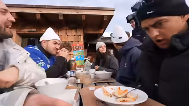 02:55:25Paul beschreibt eine besonders schnelle und euphorische Abfahrt als sein persönliches Highlight des Tages, wobei er betont, dass er noch nie so schnell gefahren ist und sich eins mit dem Board fühlt. Adi und andere loben seine Fortschritte und zeigen Begeisterung. Die Gruppe diskutiert, ob sie das Gefühl in einem Video einfangen können, und Paul erwähnt, dass er zum ersten Mal mit anderen Skifahrern mithalten konnte. Dies unterstreicht den Erfolgserlebnis-Aspekt.