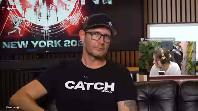 00:34:13Das Manhunt-Format wird detailliert für neue Zuschauer erklärt: Eine Influencer-Gruppe (Spielende) wird von einer Hunter-Gruppe in New York gejagt. Die Spielenden müssen 96 Stunden auf der Straße überleben, haben aber nur 30 Euro Tagesbudget, das ausschließlich per Apple Pay bezahlbar ist – jede Zahlung löst einen Standort-Ping an die Hunter aus. Es gibt strategische Elemente wie Zonen (städtisch = häufigere Pings) und Joker, die durch Minispiele gewonnen werden. Die Hunter nutzen u.a. Speed-Hunts (mehrere Pings in kurzen Abständen).