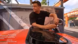 02:37:08Die Waschanlage wird nun zu einem Spektakel. Der Streamer interagiert mit dem Chat und dem Umfeld, während der Wagen von innen gesaugt und gewischt wird. Ein eintretender Nutzer möchte sogar spontan das Auto tauschen, was abgelehnt wird. Die gesamte Aktion wird als befriedigend und 'satisfying' beschrieben und intensiv gefilmt. Besondere Vorsicht wird bei der Handhabung des Saugers geboten.