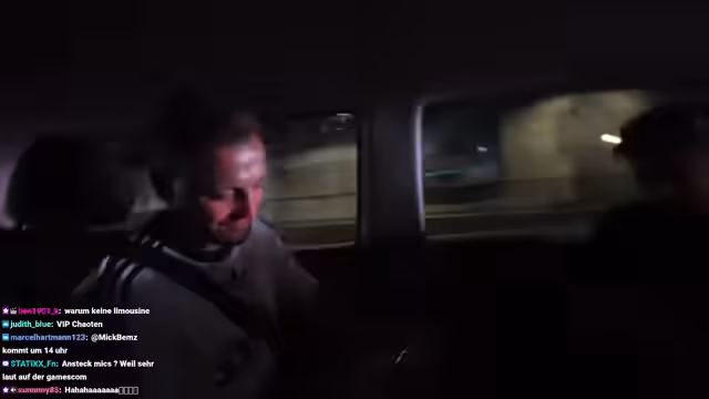04:06:30Nach einer ereignisreichen Reise vom roten Golf GTI von Mallorca über mehrere Länder erreichen die Streamer die Gamescom. Der Anlaufpunkt ist ein VIP-Taxi, das Shuttle-Vibes vermittelt. Das Stream-Setup wird vorbereitet und erste technische Probleme mit dem HDMI-Kabel auftreten, die behoben werden müssen. Der Streamer beschreibt die Messe als aufregende, chaotische Welt mit Gamescom-Geruch und freut sich auf die bevorstehenden Spiele.