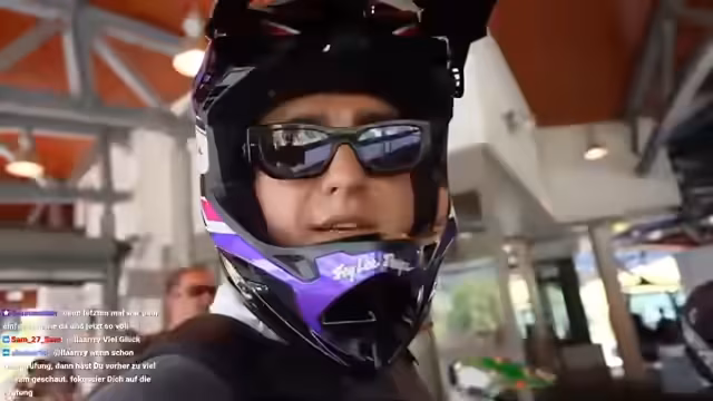 00:08:44Die beiden beklagen ihr Aussehen in der Schutzkleidung, was aber für den Sicherheitsschutz irrelevant sei. Tom, der zum ersten Mal Downhill fährt, hat falsche Vorstellungen vom Ablauf. Es werden technische Setup-Probleme angesprochen, wobei der Streamer Carsten als hilfreich hinter der Kamera erwähnt. Die Kamera wird zunächst auf dem Helm getragen, doch vor der eigentlichen Strecke soll auf eine GoPro umgestiegen werden, um die Ausrüstung zu wechseln.