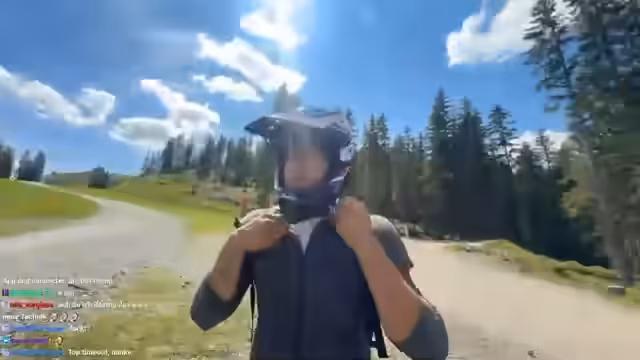 01:03:34Der Stream in Leogang beginnt entspannt. Es werden bereits gefahrene Runden angesprochen. Paul Frege gibt den Zuschauern Ratschläge zur Sicherheit und macht sich auf den Weg. Dabei wird er trotz Fullface-Helm und Sonnenbrille erkannt, was er selbst als erstaunlich betrachtet. Die Stimmung ist gelassen, doch der Fokus liegt auf dem Start der Abfahrt.