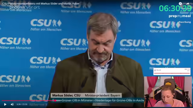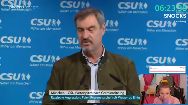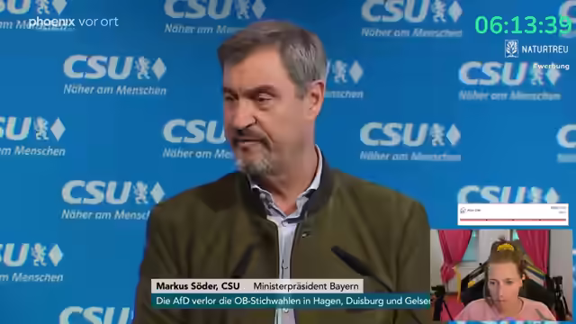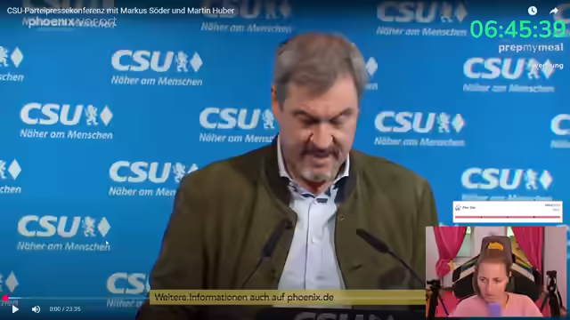 04:11:12Es wird eine Parteipressekonferenz der CSU angekündigt, um Einblicke in die aktuelle Politik zu geben, obwohl dies nicht jedermanns Geschmack trifft. Es wird betont, wie wichtig es ist, die Positionen anderer politischer Lager zu kennen, da die CSU Teil der Regierungskoalition ist. Es folgt eine kurze Pause, gefolgt von einem Musikvideo, das thematisch zur Diskussion passt. Die Kategorie Politik auf Twitch wird kurz angesprochen. Die Zuhörer werden ermutigt, den Timer im Auge zu behalten, da es für jeden Sub zusätzliche Zeit gibt. Es wird humorvoll angemerkt, dass Follows im Gegensatz zu Subs keine Verlängerung der Sendezeit bringen. Es wird kurz auf einen Zwergnasenhamster im Haustier-Channel eingegangen, bevor zur CSU-Pressekonferenz übergeleitet wird. Ein Artikel des Spiegels über das Oktoberfest wird humorvoll vorgetragen, der Einblicke in die dortigen Geschehnisse gibt. Die Verbreitung von Koks auf dem Oktoberfest wird thematisiert und die Rolle von Alkohol als Droge hervorgehoben. Abschließend wird auf die bevorstehende Rede von Markus Söder hingewiesen.