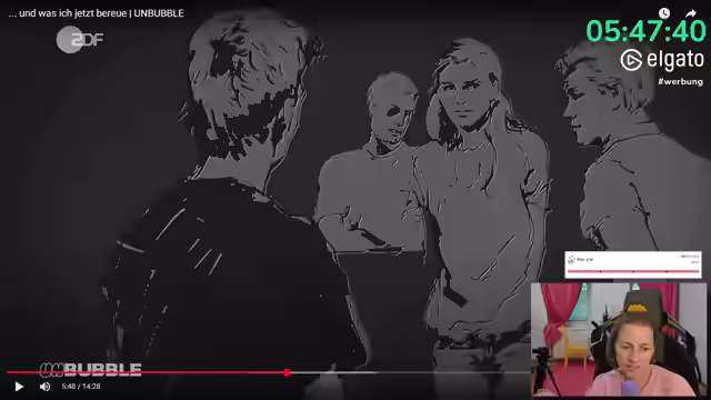06:26:03Es wird überlegt, politische Videos von Marvin Wildhage oder Lauterbach-Ausschnitte anzusehen, wobei Wildhages thematische Vielfalt zwischen Pornoindustrie und Diplomaten gelobt wird. Zudem wird überlegt, ein Video von Vincent zu schauen, das sich mit dem Thema Rechtsextremismus auseinandersetzt. Im weiteren Verlauf wird auf die ZDF Unbubble-Doku reagiert, in der es um junge Rechtsextreme geht. Vincent, der selbst in der Doku zu sehen ist, wird im Stream begrüßt. Die Diskussion dreht sich um die Erfahrungen von Vincent in der rechten Szene und wie leicht es ist, in diese abzurutschen. Es wird betont, wie wichtig es ist, über diese Themen zu reden und wie Rechtsextremismus oft durch Zugehörigkeitsgefühl und Gemeinschaft entsteht, bevor das eigentliche Gedankengut in den Vordergrund tritt. Es wird überlegt, welche positiven Vorbilder es für Jugendliche gibt und wie man sich seine eigene Persönlichkeit aus verschiedenen Aspekten zusammensetzen kann.