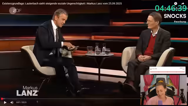 08:34:05Karl Lauterbach, Arbeiterkind mit sozialem Aufstieg, wird als Person beschrieben, die trotz hoher Ämter immer den Kontakt zur Basis behalten hat. Sein Ansatz, die Probleme klar zu benennen, wird positiv aufgenommen, da solche Aussagen vor zehn Jahren verweigert wurden. Es wird auf den dramatischen sozialen Wandel nach 1978 hingewiesen, der zu geringeren Aufstiegsmöglichkeiten und einer Zunahme der Zwei-Klassen-Gesellschaft führte. Probleme wie die Zwei-Klassen-Medizin und das Rentensystem sind seit Jahren bekannt, wurden aber nie konsequent gelöst, was zur aktuellen Frustration beiträgt.