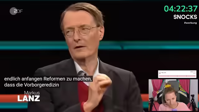 08:21:20Es wird über die Auswahl des nächsten Themas abgestimmt, wobei Karl Lauterbach den Vorzug vor Putins hybriden Krieg erhält. Die Streamerin bezeichnet sich selbst als "Überleitungsqueen". Es folgt eine Diskussion über soziale Ungerechtigkeit, die Lauterbach in einem Ausschnitt von Lanz anspricht. Dabei geht es um steigende Mieten, schlechtere Bildungschancen und die Angst vor Altersarmut und Pflegekosten. Lauterbach kritisiert das System als ungerecht und fordert, diese Probleme ernster zu nehmen. Es wird über die Lebenserwartung in Abhängigkeit vom Einkommen und den Unterschied zur Lebenserwartung von Beamten gesprochen. Im Chat wird über die politische Einstellung der Streamerin diskutiert, wobei sie sich als "linksähnlich" bezeichnet. Es werden verschiedene politische Positionen im Chat genannt, darunter konservativ-liberal und CDU-Wähler. Die Streamerin versucht, die politische Einstellung eines Chatteilnehmers aufgrund seiner Nachrichten zu erraten, was zu einer humorvollen Interaktion führt. Abschließend wird über die Ursachen für die wahrgenommene Ungerechtigkeit im Land diskutiert, darunter Migration und der Ausstieg aus der fossilen Wirtschaft.