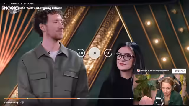 02:30:51Die 'Große Weltuntergangs-Show' von MyThinkX wird vorgestellt, die sich sarkastisch mit der Klimakrise und dystopischen Szenarien auseinandersetzt. Es wird die traurige Erkenntnis geteilt, dass Gameshows oft der einzige Weg sind, schwierige Themen einer breiten Zielgruppe zugänglich zu machen, selbst wenn man mit NGOs zusammenarbeitet. Die Show wird als Quizshow beschrieben, in der Promi-Teams in skurrilen Spielen und Quizrunden durch Weltuntergangsszenarien navigieren. Es wird die Besetzung mit bekannten Persönlichkeiten wie Parshad, Louis Klamroth, Michael Kessler und Sarah Bosetti gelobt. Der Hauptpreis der Show, eine 'Space to Holiday' zu einem Exoplaneten, wird als Fiebertraum und Hommage an alte 90er-Jahre-Gameshows empfunden. Es wird die Idee eines zukünftigen Trash-TV-Tages im Stream geäußert, um jüngeren Zuschauern alte deutsche Fernsehformate näherzubringen und die damalige Qualität kritisch zu beleuchten.
