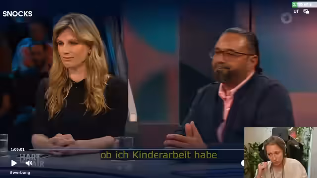 00:29:39Nach der Ankündigung des Formats "Hart Aber Fair" wird das Thema des Tages vorgestellt: Die deutsche Wirtschaftskrise im Kontext des Handelskonflikts mit den USA unter Donald Trump. Die Gäste der Runde, darunter Carsten Maschmeyer, Maja Göpel und Philipp Türmer, vorgestellt. Die Streamerin drückt ihre Sympathie für Maja Göpel aus, die sie als fachlich kompetent und konstruktiv bezeichnet. Der Fokus liegt auf der neuen schwarz-roten Koalition, insbesondere auf der designierten Wirtschaftsministerin Katharina Reiche, deren umstrittene Vergangenheit in der Gas-Lobby thematisiert wird.
