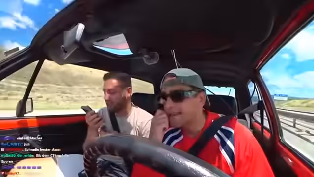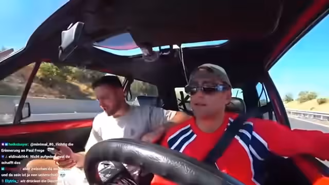 00:34:40Die Abfahrt aus dem Hotel verzögert sich unerwartet. Niki muss zur Rezeption wegen des Parktickets, und Paul blockiert die Türe. Endlich auf der Straße, gibt es die erste Gelegenheit, das Ziel des Tages zu erreichen: Frankreich. Die Ankunft in einem neuen Land und der Wunsch nach einem französischen Croissant motivieren die Streamer, zügig weiterzufahren. Die Ankunft in Frankreich ist ein wichtiger Meilenstein.