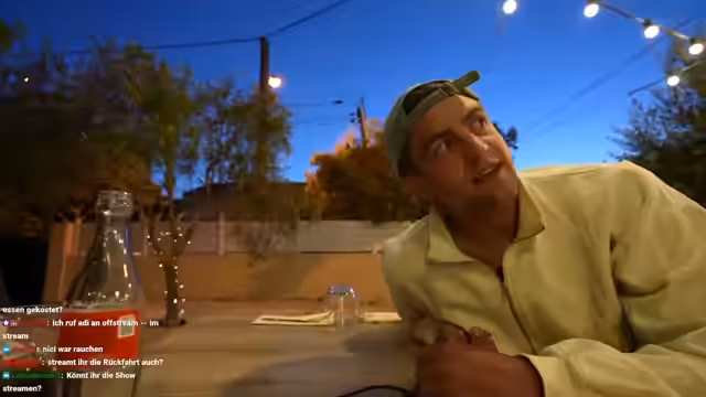 11:55:21Beim Thema Nachspeise einigen sich die Streamer darauf, sich eine Eis-Spezialität teilen zu bestellen, der eine darauf besteht, dass man abends keinen Zucker zu sich nehmen sollte, da er den Schlaf stört. Nach dem Essen kommen sie auf persönliche Themen zu sprechen, unter anderem auf die Diagnose Schlafapnoe bei einem von ihnen, die die Notwendigkeit eines Atemgeräts bei der Nachtruhe zur Folge hat. Diese Diagnose führte auch dazu, dass ein früherer Stream viral ging, in dem er unkontrolliert stark schnarchte.