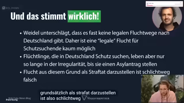 01:54:54Der Faktencheck des "Volksverpetzer" im Vergleich zum ARD-"Faktfinder" zeigt die große Diskrepanz zwischen den Medien. Während "Volksverpetzer" 18 Falschaussagen bei Alice Weidel aufdeckte, fand die ARD nur drei. Dies wirft die Frage auf, welche Quelle man glauben soll. Viele Aussagen von Politikern liegen in einer Grauzone, die sich nicht klar als Falsch bewerten lässt, da sie oft vage sind, andeuten oder Verdrehungen enthalten, anstatt offene Lügen zu verbreiten.