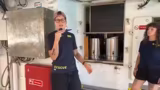 00:12:04Der Gang führt zum unteren Deck, dem Twin Deck, wo die Kabinen der Crewmitglieder gezeigt werden. Abgesehen von Offizieren und Maschinenpersonal teilen sich die meisten Crewmitglieder Zweierkabinen. Anschließend wird die Vorratskammer für die Geretteten besichtigt. Hier bevorratet man große Mengen an Nahrungsmitteln wie Reis, Linsen und Bohnen, um teilweise hunderte von Menschen zu versorgen. Besonderes Augenmerk wird auf zwei sehr große, begehbare Kühlschränke gelegt, die eine wesentliche Rolle in der Logistik für die warmen Mahlzeiten spielen, die für Crew und Gerettete identisch sind.