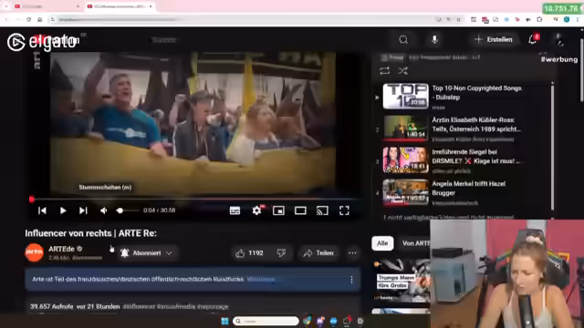Der Stream startet mit gesundheitlichen Themen nach einer Operation. Der Fokus liegt auf politischen Inhalten, darunter die Entwicklungen in den USA unter Trump und Proteste gegen CSD-Veranstaltungen in Deutschland. Es wird eine Dokumentation über Angela Merkel und die Flüchtlingspolitik von 2015 gezeigt, in der Geflüchtete von ihren Fluchterfahrungen berichten.