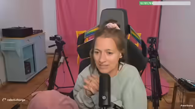 00:10:24Im weiteren Verlauf wird das extreme Wetterthematisiert. Während im Chat über extreme Hitzewellen geklagt wird, berichtet die Streamerin von kühlen Temperaturen in ihrer Arbeitsumgebung. Sie beschreibt die Herausforderungen, die sich aus der kühlen Altbauwohnung ergeben, insbesondere im Hinblick auf anstehende Heizkosten im Winter und ihre Notfallstrategen mit Heizkissen und warmer Kleidung.