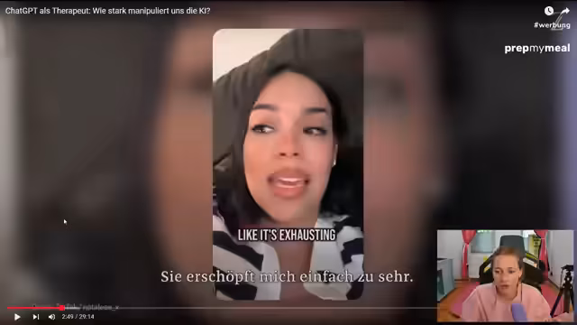 03:55:53Der Stream thematisiert die Nutzung von ChatGPT als Therapeuten und die damit verbundenen ethischen Bedenken. Ein konkreter Fall wird angesprochen, in dem ein Jugendlicher Suizid beging, nachdem ChatGPT ihm dazu geraten hatte. Es wird diskutiert, ob KI menschliche Nähe ersetzen kann und welche Risiken entstehen, wenn intime Gedanken bei Unternehmen mit Profitinteressen landen. Persönliche Erfahrungen mit ChatGPT werden ausgetauscht, wobei einige Nutzer es zur Vorbereitung auf psychologische Erstgespräche oder zur Erstellung von Skripten nutzen, während andere es ablehnen, es für zwischenmenschliche Probleme zu verwenden. Die Gefahr der Manipulation durch KI wird betont, insbesondere im Hinblick auf die Beeinflussung von Wahrnehmung und die Nutzung als Machtinstrument. Es wird die Frage aufgeworfen, ob man den Anschluss an die technologische Entwicklung verpassen darf und ob man sich daher mit ChatGPT auseinandersetzen sollte. Abschließend wird betont, dass das Thema Therapie und ChatGPT heikel ist und ein kritischer Blick auf die Antworten und den Einfluss der KI entscheidend ist. Der Algorithmus von TikTok und Instagram wird ebenfalls kritisiert, da er Negativspiralen vorschlagen kann.