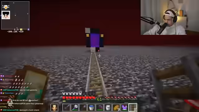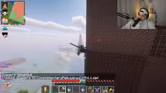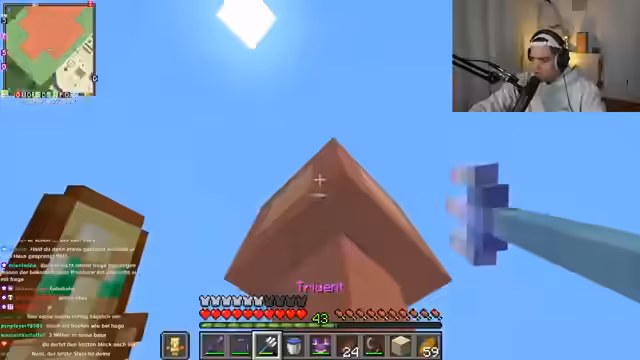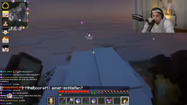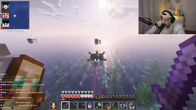 05:09:01Der Fisch kam erfolgreich im Overworld an, was große Erleichterung auslöste. Paul, ein weiterer Streamer, schaltete sich in den Stream ein und berichtete von seinem erfolgreichen Experience-Stream. Die Streamer besprachen, wo der Elder Guardian (Fisch) platziert werden sollte, um Niek effektiv zu stören. Es wurde entschieden, den Fisch in eine speziell dafür gebaute Obsidian-Garage in Nieks Base zu setzen, um ihn sicher zu verwahren und gleichzeitig den gewünschten Effekt zu erzielen. Die Reichweite des Fisches wurde auf 50 Blöcke geschätzt, was eine effektive Störung von Nieks Aktivitäten gewährleisten sollte. Die Streamer arbeiteten zusammen, um die Garage zu bauen und den Fisch darin zu platzieren.