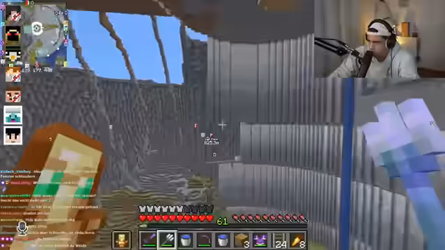 02:54:19Die Streamer erreichen endlich einen Wassertempel und finden den Elder Guardian-Fisch. Es stellt sich heraus, dass die Fische sehr stark sind und erheblichen Schaden anrichten können. Um die Effekte des Elder Guardians zu neutralisieren, wird ein Milcheimer benötigt, was eine weitere Suche nach Kühen erfordert. Fabo findet schnell Kühe, um Milch zu besorgen. Die Streamer planen, den Fisch über ein Nether-Portal zum Gefängnis zu transportieren, was als mörderische Aufgabe beschrieben wird. Währenddessen gibt es Probleme mit der Ausrüstung, insbesondere mit der Elytra, die repariert werden muss. Die Streamer müssen Gold und Power Rails besorgen, um den Transport des Fisches zu ermöglichen, was sich als schwierig erweist, da Adi, der viele dieser Gegenstände besitzen soll, nicht erreichbar ist und sich in seinem eigenen Redstone-Projekt vertieft hat.
