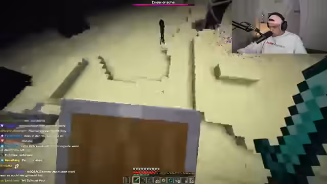 03:57:10Im Inneren des Endportals angelangt, bereiten sich die Streamer nun auf den finalen Kampf vor. Sie rüsten sich mit verzauberten Waffen, Rüstung und Goldäpfeln aus. Der Streamer erklärt die wichtigsten Strategien für den Kampf, wie das Zerstören der Kristalle und das Vermeiden der Angriffe des Enderdrachen. Die Atmosphäre ist angespannt und auf den Höhepunkt des Streams fokussiert.