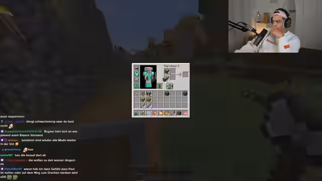 03:04:23Ein weiterer unglücklicher Vorfall ereignet sich, als einer der Streamer durch einen Creeper-Explosion stirbt und erneut seine gesamte Ausrüstung verliert. Der andere Streamer startet eine spektakuläre Rettungsaktion, durch die er die Koordinaten des toten Partners findet und dessen Items sicherstellt. Anschließend bereiten sie sich noch einmal auf den Kampf vor, indem sie sich mit Nahrung, Waffen und Rüstung ausstatten.