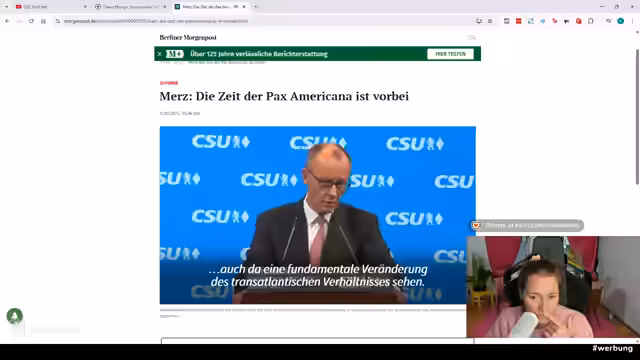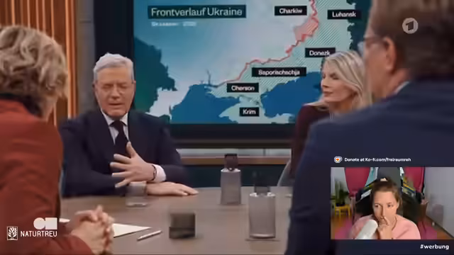 00:07:02In diesem Stream wird die letzte Miosga-Folge angekündigt, da ab nächstem Jahr tiefere Inhalte statt Talkshows geplant sind. Diskutiert werden Trumps neue Strategie und Zelenskys Entgegenkommen mit den Gästen Norbert Röttgen (CDU-Außenpolitiker), Nicole (Sicherheitsexpertin) und Annette Meiritz (Handelsblatt-Korrespondentin). Der Streamer betont, dass Kuro heute nicht anwesend ist und plant eine Reaction auf die aktuelle Folge.