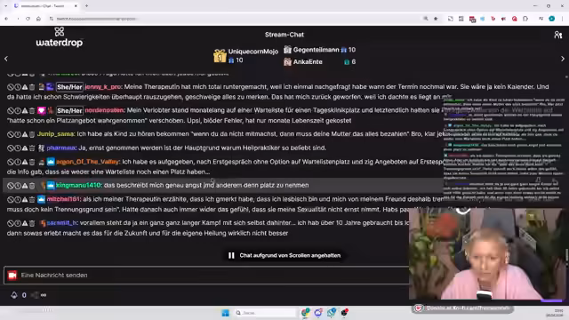 02:51:20Der Streamer schildert negative Erfahrungen mit dem deutschen Gesundheitssystem und dem Zugang zu Therapie. Er berichtet von einer Therapeutin, die nach dem Erstgespräch sofort Kosten genannt hat, ohne auf seine Anliegen einzugehen, was er als gefühlskalt und enttäuschend beschreibt. Viele Zuschauer bestätigen im Chat ähnliche Erlebnisse und das Gefühl, sich in Therapie nicht ernst genommen zu fühlen. Der Streamer betont, dass diese Hürde viele Menschen davon abhält, überhaupt eine Therapie zu suchen, und wie elementar das Gefühl des Ernstgenommenwerdens ist. Er teilt auch mit, dass er trotz eines anderthalbjährigen Kampfs nur als Selbstzahler einen Termin für eine ADHS-Diagnose bekommen konnte.