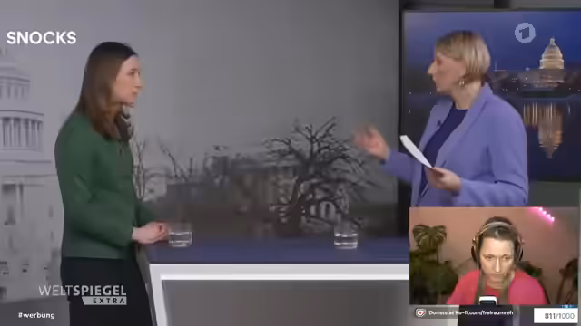 02:00:46Anfang 2025 nutzt Trump, dargestellt als Dealmaker, den Druck auf die Ukraine, indem er Präsident Selenskyj ins Oval Office einlädt und ihn dort demütigt. Dieses Treffen wird als vorsätzlicher Überfall inszeniert, um Selenskyj in einem für das US-Fernsehen günstigen Moment zu schwächen. Die Folgen sind ein Zerwürfnis zwischen den USA und der Ukraine, während die USA weiterhin W liefert, die jedoch von Europa bezahlt werden. Europa ist geschockt und Russland nutzt die Situation, um die USA und Europa weiter auseinander zu dividieren.