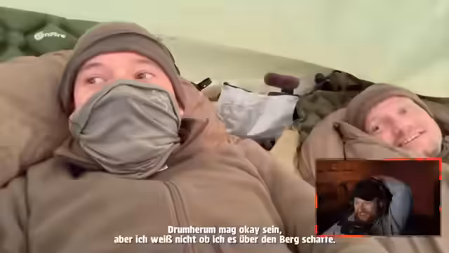 01:11:41Der Streamer wechselt das Thema und reagiert gemeinsam mit dem Chat auf die Survival-Serie 'Hunt to Survive', die in der kanadischen Wildnis spielt. Das Team hat bereits mehrere schwere Etappen absolviert, dar einen Marsch durch tiefen Schnee und Nebel bei Minusgraden. Kommentiert wird die immense physische und mentale Belastung, die Taktik beim Weg über die unwegsamen Berge sowie die Detailtiefe der gezeigten Ausrüstung, die mehrere Kilogramm wiegt und für die Jagd und das Überleben notwendig ist.