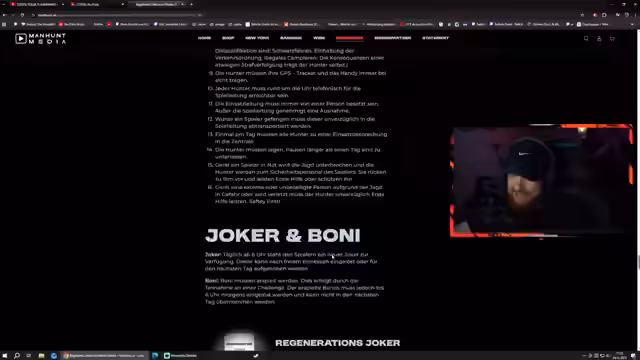 02:28:06Ein wichtiger Wendepunkt wird erreicht, als ein Spieler den 'Regenerationsjoker' gewinnt. Dieser verhindert für vier Stunden das Setzen von Pingen an die Taskforce und schafft damit eine entscheidende Ruhepause. Die Stream-Zuschauer diskutieren intensiv über die genauen Regeln, insbesondere in Kombination mit der '2-Stunden-Regel' für Unterkünfte. Gleichzeitig beginnen die Jäger, ihre Taktik für die erste Nacht zu planen, sich auf die Positionen der Spieler nach dem letzten Ping konzentrierend und clusterbildend vorzugehen.