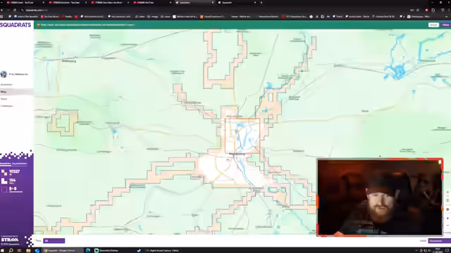 00:01:38Der Stream startet mit einer lockeren Begrüßung und persönlichen Anekdoten. So erwähnt Fritz, dass er nach längerer Pause keine Intervalle mehr macht, sondern nur noch Squat-Reds sabbelt, und einen selbstgekochten Lasagne-Eintopf beschreibt. Hauptsächlich widmet er sich jedoch seinem neuen Hobby: der Kacheljagd auf einer Online-Plattform. Er demonstriert seine bisherigen Radtouren, die von Marokko über Mallorca bis hin zur North Cape-Tour reichen, und zeigt seine ambitionierte Absicht, sein Heimatgebiet Stück für Stück zu einem orangen Viereck auszuarbeiten, indem er systematisch Kacheln freischaltet.