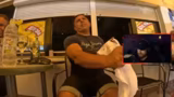00:27:18Der Streamer kämpft mit einer Reihe von Problemen. Nasse Füße und Schuhe führen zu Blasenbildung am kleinen Zeh, was die Weiterfahren erschwert. Er wird von Einheimischen in Kroatien empfangen und ihm wird angeboten, bei ihnen zu übernachten, was er jedoch aus Zeitgründen ablehnt. Später hat er mit einem Stechen durch eine Biene zu kämpfen und muss feststellen, dass sein Reifenluftdruck stark gesunken ist, was seine Performance erheblich beeinflusst und ihn zwingt, anzuhalten und zu pumpen.