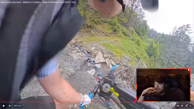 04:35:38Der Stream beginnt mit der Betrachtung einer Asphaltpassage, die an den Start des Rennens erinnert. Der Fokus verlagert sich jedoch schnell auf die extrem anspruchsvollen, steilen Anstiege des Hellenic Mountain Race. Die Teilnehmer benötigen spezielle Mountainbikes, da ein Gravel- oder Rennrad für diese Strecke nicht geeignet wäre. Die Kamera fängt einen Moment ein, in dem ein Fahrer eine Rampe hochstößt, die der Streamer als nicht fahrbar beschreibt. Das Setups der Athleten werden ebenfalls thematisiert, wobei ein Teilnehmer mit einem Fully-Bike unterwegs ist, was für die technisch anspruchsvolle Strecke notwendig erscheint. Aktuell befindet sich der Fahrer auf Platz 8, eine anspruchsvolle Position.